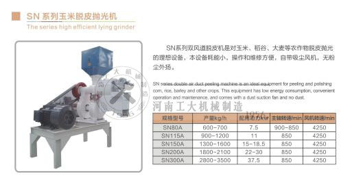 SN系列双风道脱皮机是对玉米、稻谷、大麦等农作物脱皮抛光的理想设备,本设备耗能小,操作和维修方便,自带吸尘风机,无粉尘外扬。